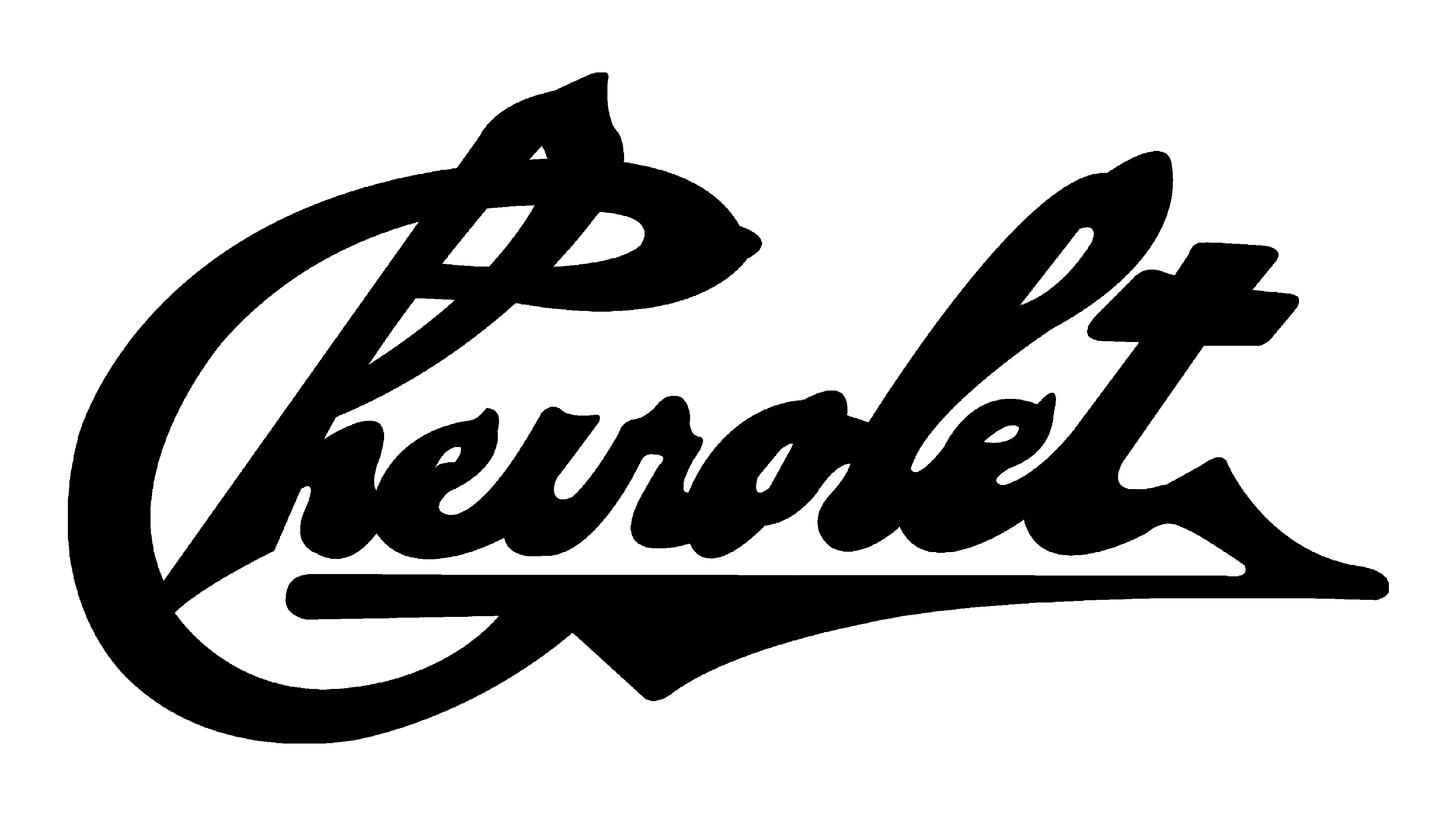 The very first Chevrolet logo, introduced in 1911, was completely different from all the following versions, and only stayed with the company for two years. It was a bold black script lettering with overlapping loops of the characters on top, and a massive triangular underline at the bottom.