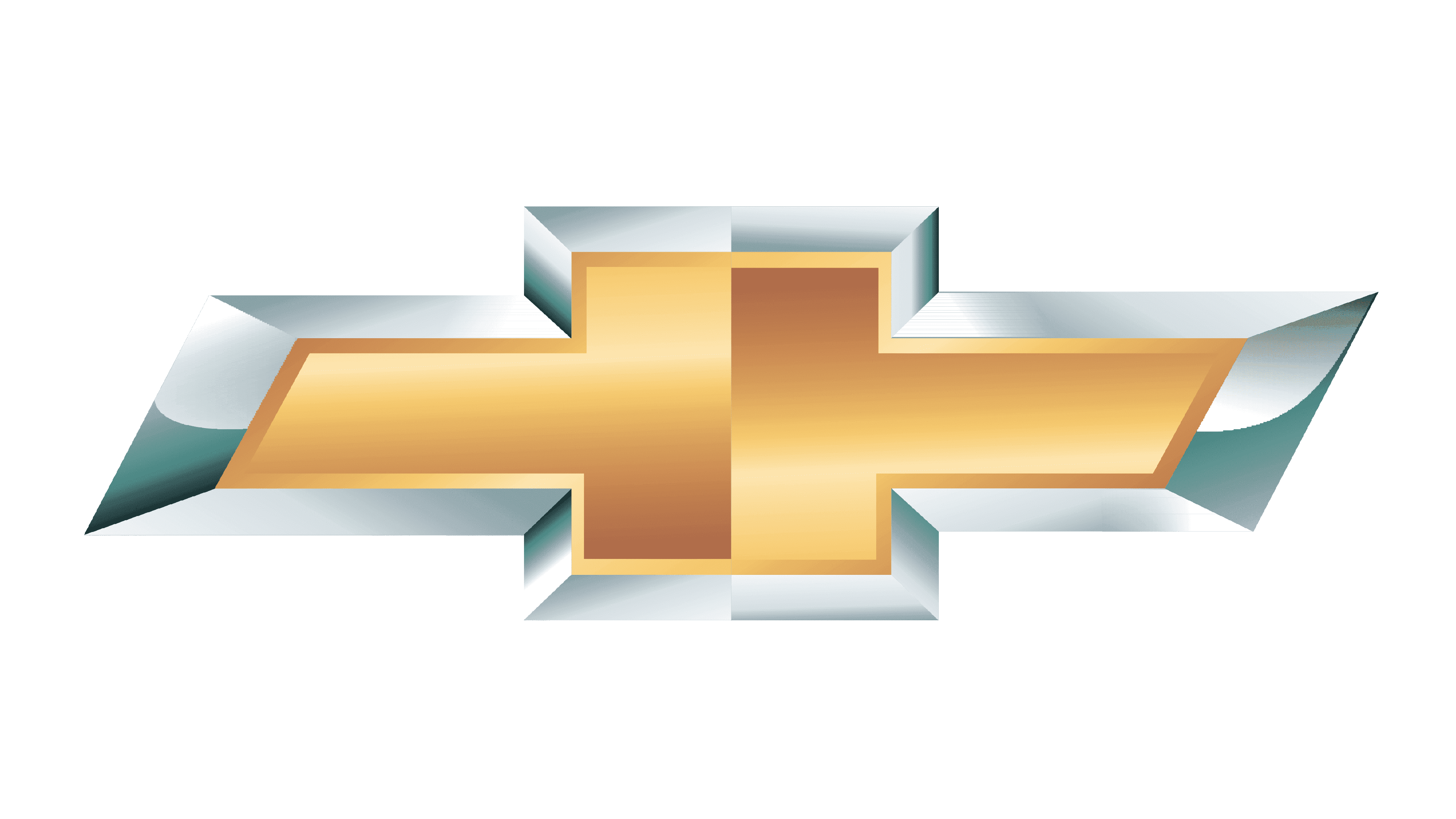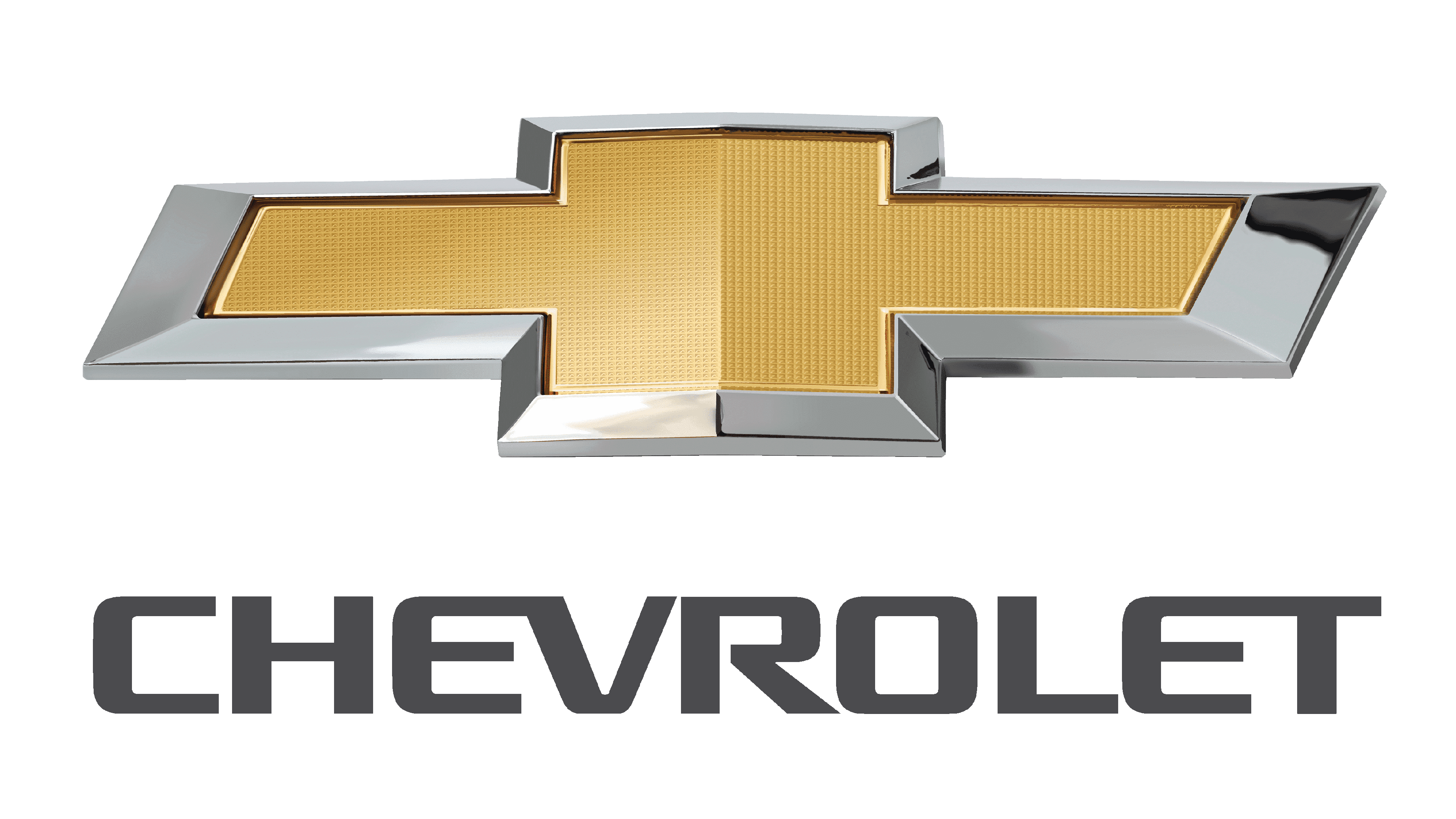 The gold and silver bowtie got a vertically-striped pattern of its background and is now accompanied by a medium-gray logotype in the corporate Chevrolet typeface, placed under it. The smooth lines of the letters balance the sharp straight contours of the cross, making the whole composition look harmonious and stylish.